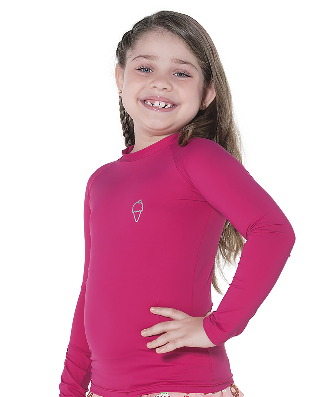 Gola redonda. Com proteção UV.